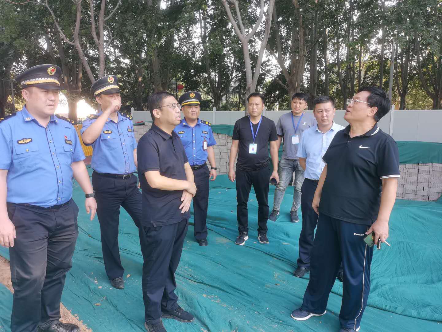 对于四环快速化沿线施工围挡整治,郑州市城市管理执法支队支队长尚学振多次到现场检查,组织召开郑州市四环道路工程围挡整治工作约谈会,对一批行动迟缓、整治效果不佳的单位进行了约谈,督促相关单位提高围挡规范标准化意识,在保证施工进度情况下,严格围挡设置标准,打造整洁、有序的四环周边环境。9月7日,支队长尚学振再次带领各相关部门负责同志对中原区、高新区、惠济区、金水区、郑东新区四环快速化桥下道路施工工程进行检查,对发现问题现场督促整改。