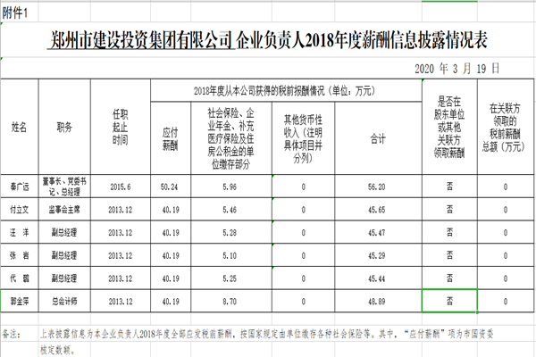 冠军体育官网企业负责人2018年度薪酬信息披露情况表